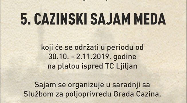 Udruženje pčelara “Kesten” Cazin organizuje peti po redu “Cazinski sajam meda” koji počinje u srijedu, 30. oktobra.