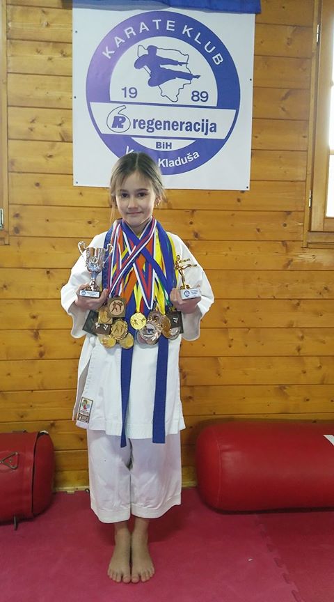 Arianna trenutno pohađa nastavu u Osnovnoj školi “25. novembar”. Kada su u pitanju njena dosadašnja dostignuća u karateu, ponosna je vlasnica 34 medalje sa međunarodnih, regionalnih i kantonalnih takmičenja. Za sada ima i dva pehara, a proglašena je i za najboljeg polaznika grupe “Ciciban” KK “Regeneracija” u 2016. godini. Najdraži uspjeh joj je, kako kaže, prošlogodišnje takmičenje u Trbovlju u Sloveniji, gdje je u kategoriji “Cicibani” u kojoj su bili takmičari iz 16 država, osvojila drugo mjesto.