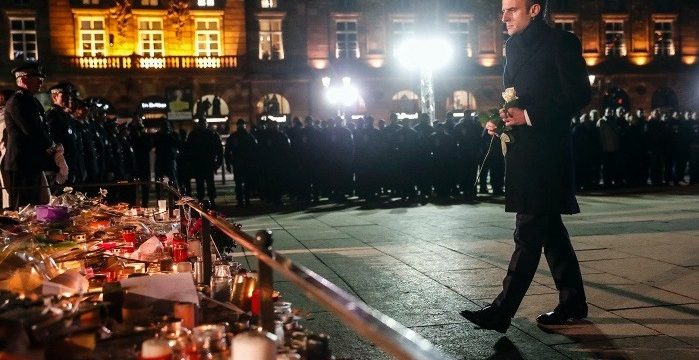 Francuski predsjednik Emanuel Makron posjetio je mjesto napada u Strazburu gdje je ostavio jednu bijelu ružu na ulici gdje građani ostavljaju cvijeće i pale svijeće za žrtve nedavnog napada džihadiste.