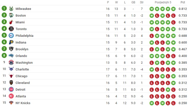 Tabela Istočne konferencije: