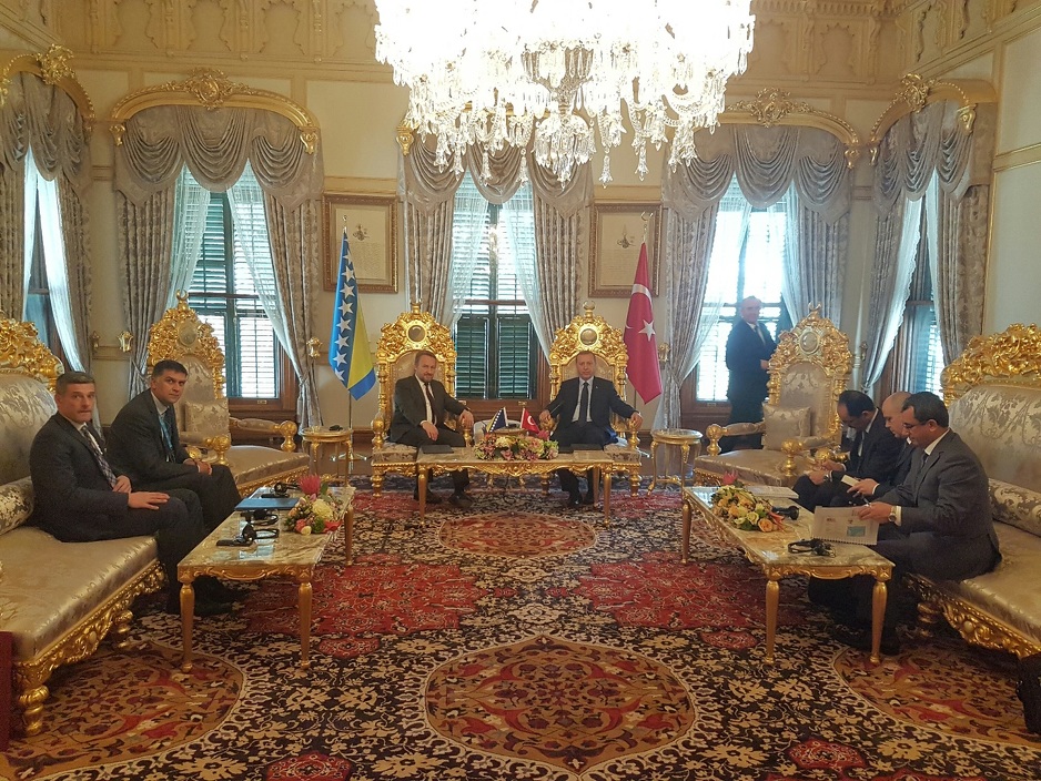 Predsjedavajući Predsjedništva Bosne i Hercegovine Bakir Izetbegović susreo se s predsjednikom Republike Turske Recepom Tayyipom Erdoganom, saopćeno je iz Predsjedništva BiH. Tokom susreta, u srdačnom razgovoru, razmatrani su bilateralni odnosi BiH i Turske. Sagovornici su se složili da su odnosi dviju zemalja na najvišem nivou, izrazivši obostranu želju da se postignuti nivo održava, a saradnja produbljuje na svim poljima. Predsjedavajući PBiH Izetbegović i predsjednik Erdogan su, uoči summita Organizacije islamske... Pročitaj sve