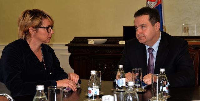 Prvi potpredsednik Vlade Republike Srbije i ministar spoljnih poslova Ivica Dačić primio je danas zamenicu ministra spoljnih poslova Bosne i Hercegovine Anu Trišić Babić a tokom susreta razmenjena su mišljenja o aktuelnom stanju bilateralnih odnosa Srbije i Bosne i Hercegovine i modalitetima njihovog unapređenja u narednom periodu. Tema razgovora bila su i pitanja regionalne saradnje, kao i prioriteti tokom srpskog predsedavanja OEBS-u, saopšteno je iz Ministarstva spoljnih poslova Srbije. Obje... Pročitaj sve