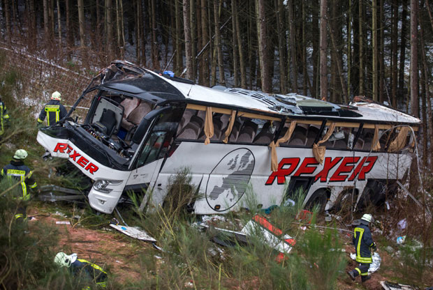 Najmanje četiri osobe su poginule, a 40 povređeno u saobraćajnoj nesreći koja se dogodila danas na autoputu A4 u istočnom Hesenu, kada se putnički autobus obrušio u provaliju duboku oko 50 metara, javljaju njemački mediji. Prema izvještajima medija, uzrok nesreće se još ispituje. Autobus je bio pun penzionera i, uglavnom starijih osoba, koje su krenule iz pokrajine Rajnland-Pfalc za Lajpcig, gdje je trebalo da proslave Novu godinu. Autobus se, izgleda,... Pročitaj sve
