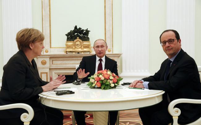 Njemačka kancelarka Angela Merkel i francuski predsjednik Francois Hollande završili su razgovor s ruskim predsjednikom Vladimirom Putinom, koji je trajao više od pet sati, ali nisu postigli dogovor koji bi pomogao da se riješi ukrajinska kriza. Glasnogovornik Kremlja Dmitri Peskov rekao je kako se troje državnika u konstruktivnom razgovoru dogovorilo da nastave raditi na zajedničkom dokumentu kojim bi se omogućila provedba sporazuma o primirju, koji je u septembru postignut u... Pročitaj sve