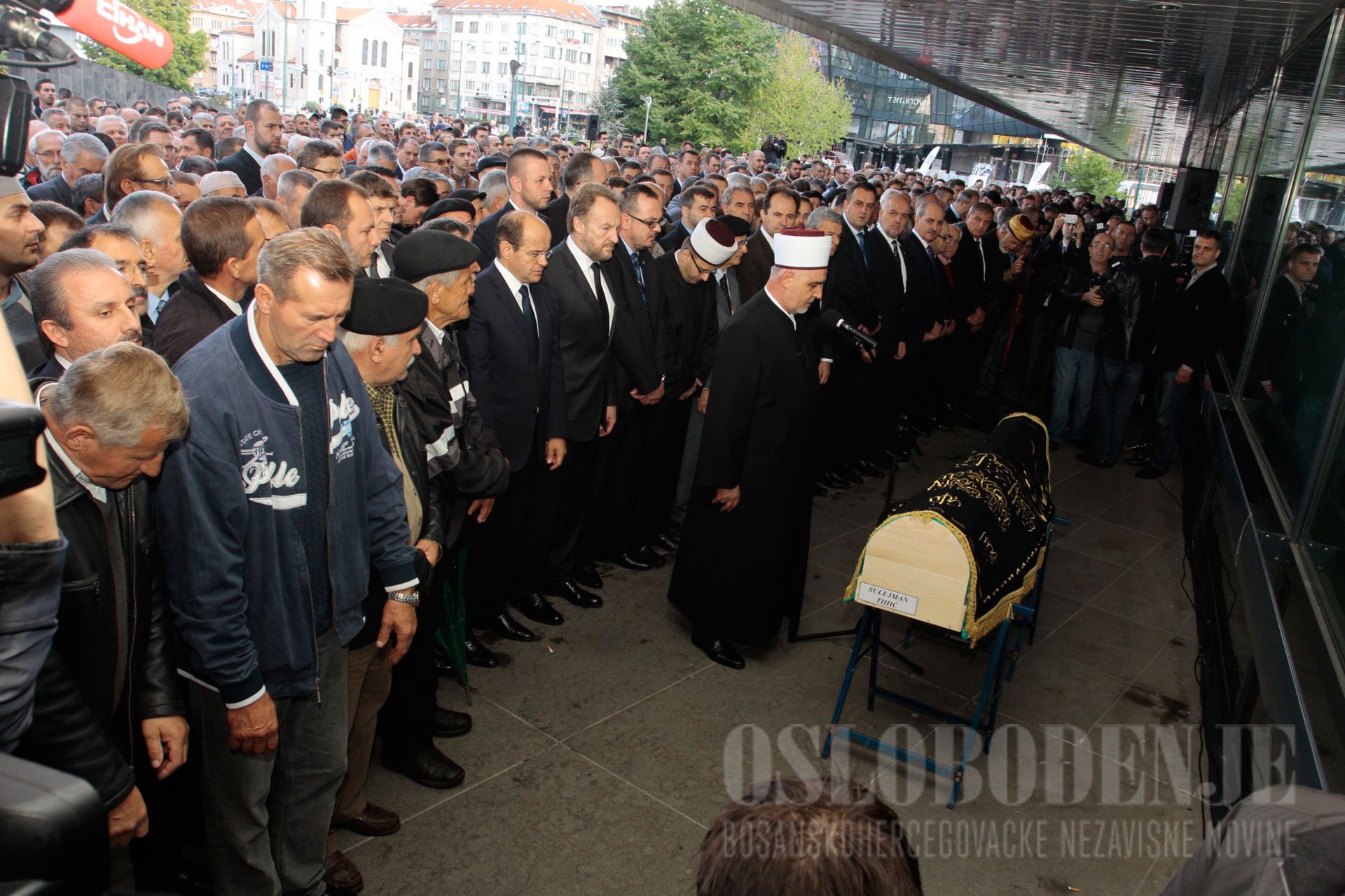 Više hiljada građana, prijatelja i kolega klanjalo je dzenazu-namaz Sulejmanu Tihiću, zamjeniku predsjedavajućeg Doma naroda Parlamentarne skupštine Bosne i Hercegovine danas u Sarajevu ispred Parlamenta BiH. Tabut sa tijelom Sulejmana Tihića na rukama, formirani u dvije kolone, do vozila pogrebnog društva, prenijeli su prisutni prijatelji i kolege nakon čega je kolona sa krenula za Bosanski Šamac, njegov rodni grad. Podsjetimo, tabut sa tijelom Sulejmana Tihića, zamjenika predsjedavajućeg Doma naroda Parlamentarne skupštine Bosne i... Pročitaj sve