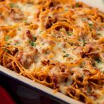 Sastojci: 600 g mljevenog mesa, 300 g špageta, 1 veća glavica crnog luka, 3 kašike paradajz pelata, 2 jajeta, peršun, 1 dl paradajz soka. Priprema: 1. Obarite špagete u slanoj vodi pa procijedite. 2. Isjeckajte crni luk i stavite da se prodinsta pa dodajte mljeveno meso i dinstajte još oko 15 minuta. Na kraju dodajte paradajz pelat, so, biber, isjeckani peršun i jaje. 3. U vatrostalnu tepsiju stavite pola špageta,... Pročitaj sve
