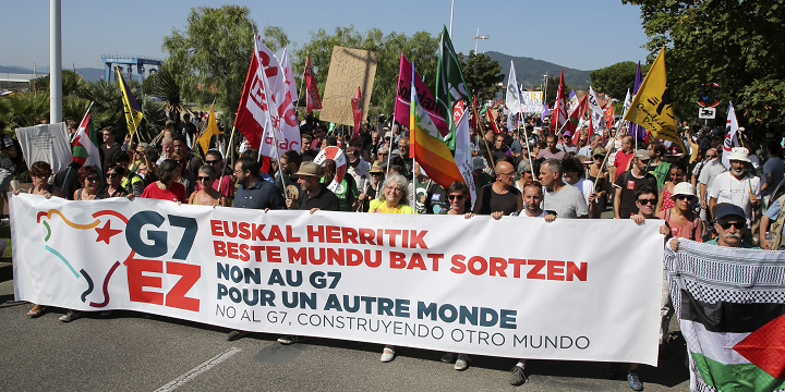 “Važno je da pokažemo da se narod mobiliše i da se ne slaže sa svijetom kakvog nam predlažu”, rekla je jedna demonstranktinja, članica baskijskog antiglobalističkog udruženja Bizi.