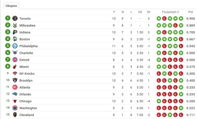 Tabela Istočne konferencije: