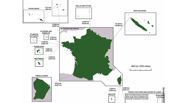 Među njima su Gvadalupe i Martinik na Karibima, Reinion u Indijskom okeanu i Francuska Polinezija na Pacifiku.