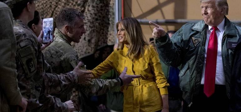 On je s prvom damom Melanijom tamo proveo tri sata s američkim vojnicima.