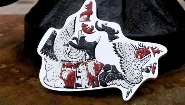 Tako je ona pretvorila Quebec u snježnu sovu koja je poletjela, a Ontario u morskog gnjurca sa sklopljenim krilima. Britanska Kolumbija je u međuvremenu postala bijeli medvjed.