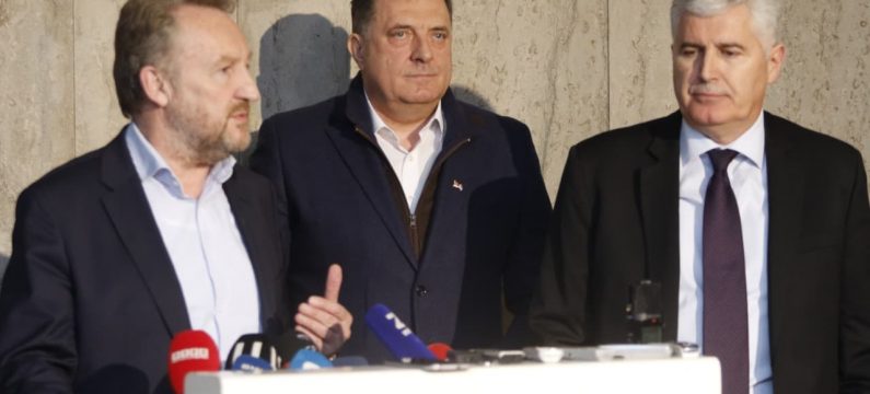 U zgradi Predsjedništva BiH održan je sastanak delegacija SDA, SNSD-a i HDZ-a BiH o formiranju vlasti na državnom nivou. Delegacije su danas predvodili lideri stranaka Bakir Izetbegović, Milorad Dodik i Dragan Čović, a nakon sastanka rečeno je da su svi dobili dobili po tri ministarstva u Vijeću ministara BiH.