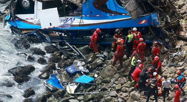 Najmanje 48 osoba poginulo je u Peruu pri padu autobusa u provaliju na stjenovitu plažu, nakon sudara s kamionom, saopštila je policija novi bilans žrtava.