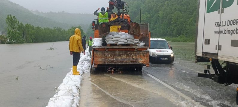 Zbog izlijevanja vode na kolovoz obustavljen je saobraćaj na magistralnim putevima: Bihać – Srbljani (Kostela), Bihać – Kamenica i Bosanska Otoka – Bužim.