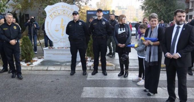 U čast sarajevskih heroja, policajaca Adisa Šehovića i Davora Vujinovića koji su ubijeni na današnji dan prošle godine, otkriveno je spomen-obilježje koje je postavljeno u ulici Geteova do broja 1 u Sarajevu.