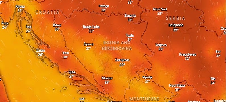 Slično vrijeme zadržat će se i u četvrtak. U jutarnjim satima temperature će biti između 14 i 20 stepeni, a na jugu i sjeveru do 22. Tokom dana, sunce će dodatno ugrijati zrak, pa će maksimalna temperatura ponovo dostići i 34 stepena.
