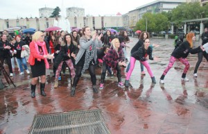 Više od 50 žena plesalo je danas na Trgu Republike u Podgorici u okviru dana međunarodne borbe protiv nasilja nad ženama i djevojkama (Adel Ömeragiç – Anadolu Ajansı)