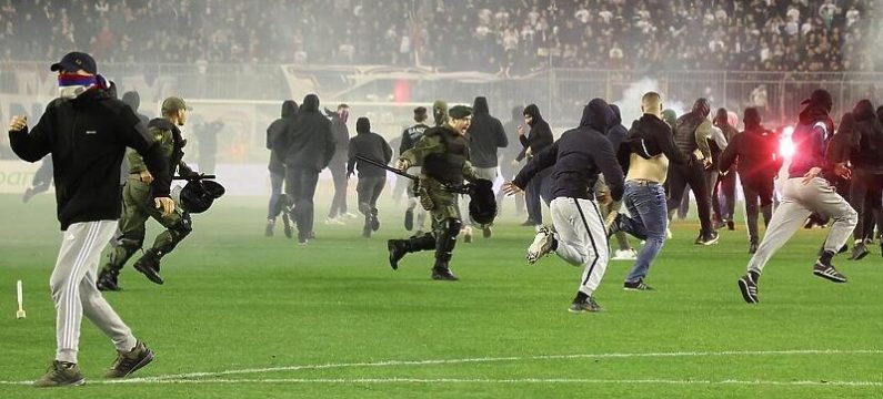 “Pravovremenom reakcijom i postupanjem policije spriječen je napad i osobe su odvraćene na tribine”, saopćila je policija.