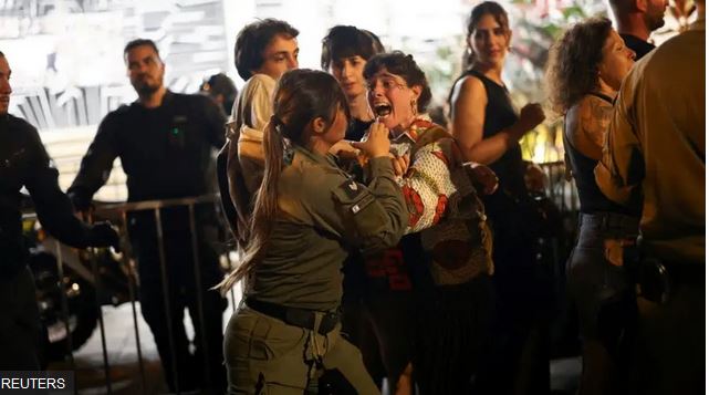 Demonstranti su nosili slike talaca, uzvikivali slogane i pozivali na hitan prekid vatre i oslobađanje zarobljenih.