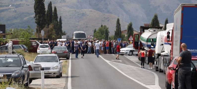 Nekoliko stotina radnika mostarskog Aluminija blokirali su jutros magistralni put M-17 od Mostara ka moru, u mjestu Ortiješ, južno od centra Hercegovine.