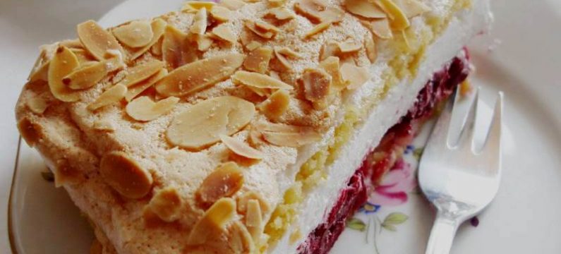 Bjelanjake umutiti u čvrsti snijeg uz postepeno dodavanje šećera. Premazati obje kore od prhkog tijesta bjelanjcima (ostavite dva cm od ruba jer se pečenjem bjelanjci prošire do ruba). Pospite bademe. Pecite u prethodno zagrijanoj pećnici na 180 °C otprilike 20 minuta, ovisno o vašoj rerni.