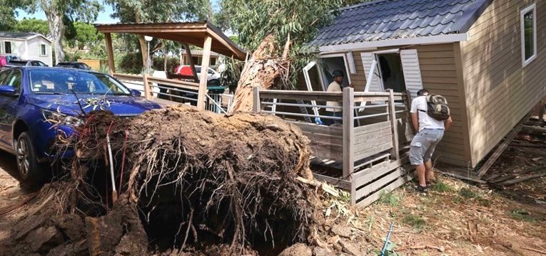 Grad, jaka kiša i vjetrovi koji su dostigli najveću brzinu od 224 km na sat zahvatili su ostrvo rano u toku dana. Dvije osobe su poginule kada je drveće palo na kampove.Francuski predsjednik Emanuel Makron rekao je da je sazvao hitan sastanak vlade putem video konferencije da reaguje na krizu.