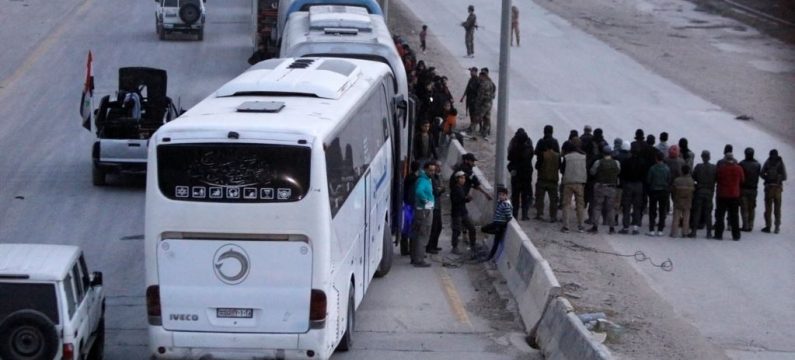 “Autobusi sa oko 500 boraca i njihovih porodica prešli su u Arbin, bivši položaj između sirijskih snaga i pobunjenika”, dodala je Sana navodeći da će pobunjenici biti prebačeni u provinciju Idlib koja nije pod kontrolom snaga sirijskog predsednika Bašara el Asada.