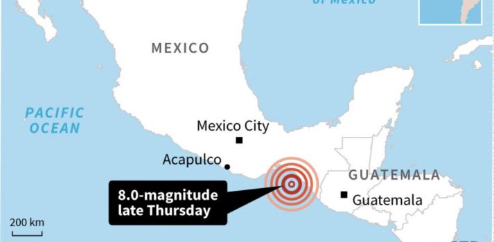 U snažnom zemljotresu magnitude 8,1 stepeni koji je pogodio južnu obalu Meksika stradalo je najmanje sedmoro ljudi, prenosi BBC.