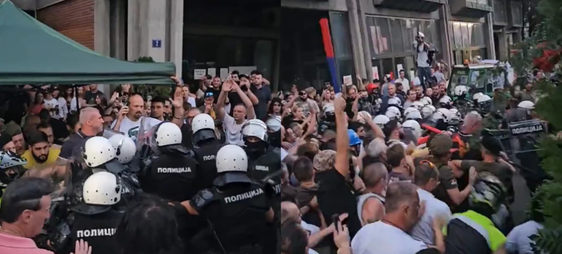 Građani, studenti i policija u punoj opremi za razbijanje demonstracija sukobili su se sinoć ispred Filozofskog fakulteta u Novom Sadu.