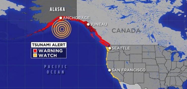 Upozorenje na cunami objavljeno je za rijeku Kuk koja povezuje Enkoridž sa Zalivom Aljaska, ali je kasnije povučeno.