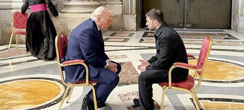 Fotografije koje je objavila ukrajinska predsjednička služba pokazuju Trumpa i Zelenskog kako razgovaraju u Vatikanu 26. aprila 2025. godine. Njihov sastanak održan je u četiri oka na marginama papine sahranee, a Trump je kasnije rekao da je razgovor “prošao dobro” te da je pitanje Krima “samo nakratko” spomenuto.