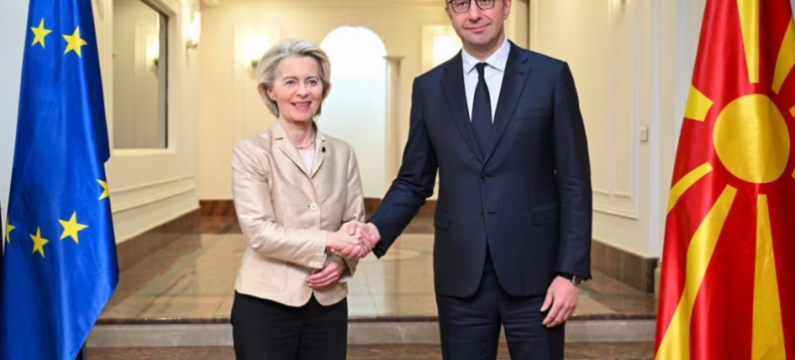 “U potpunosti podržavamo Sjevernu Makedoniju na njenom putu ka EU. Možete računati na nas“, napisala je Fon der Lajen na društvenoj mreži X, nakon sastanka sa premijerom Hristijanom Mickovskim u srijedu u Skoplju.