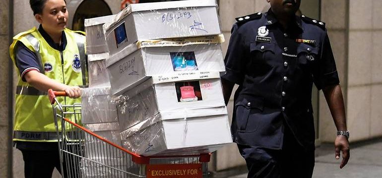 Malezijska policija zaplenila je 284 kutije u kojima su pronađene 72 vreće s novcem i nakitom u domu bivšeg premijera Malezije Najiba Razaka protiv kojeg se vodi istraga o proneveri novca, preneli su mediji.
